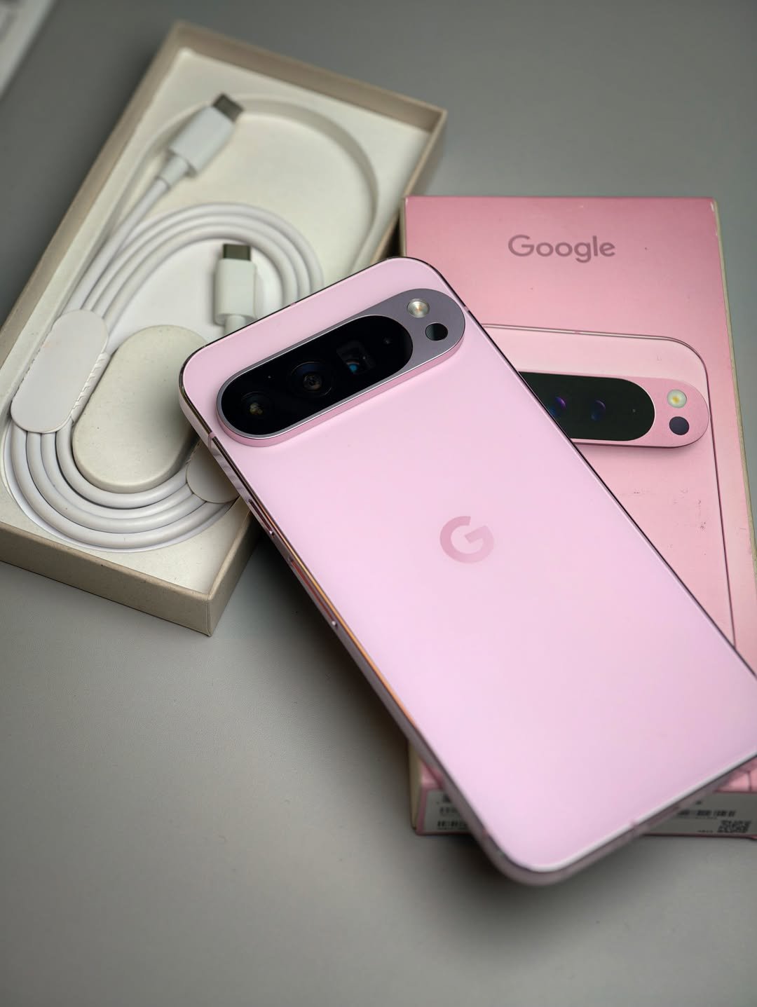 Premium pre-owned Google Pixel 9 Pro XL (16GB RAM / 256GB storage) in Quartz Rose. Perfect condition, fully tested, unlocked, complete original set.