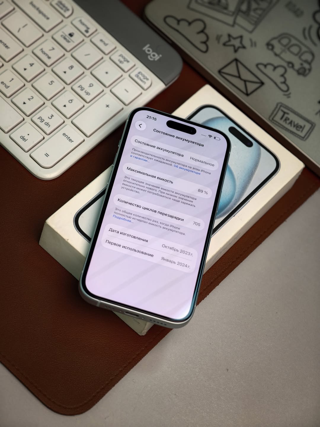 Premium pre-owned iPhone 15 128GB in excellent condition. 89% battery health, perfect body, only 2โ3 light scratches on the display (not visible under glass).