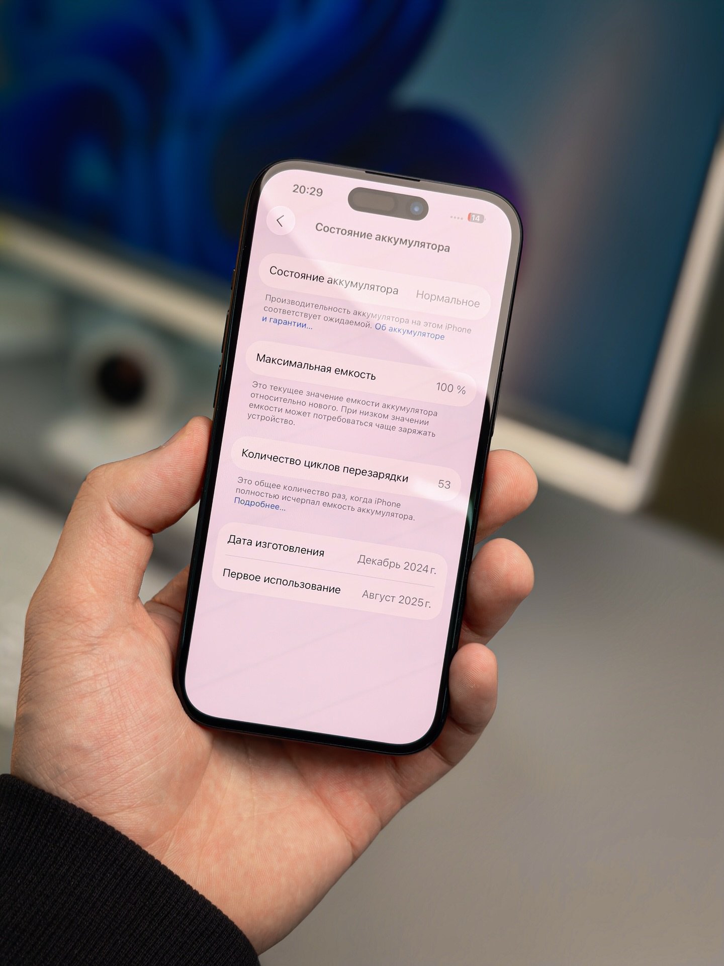 100% battery health, only 53 cycles (almost brand new)