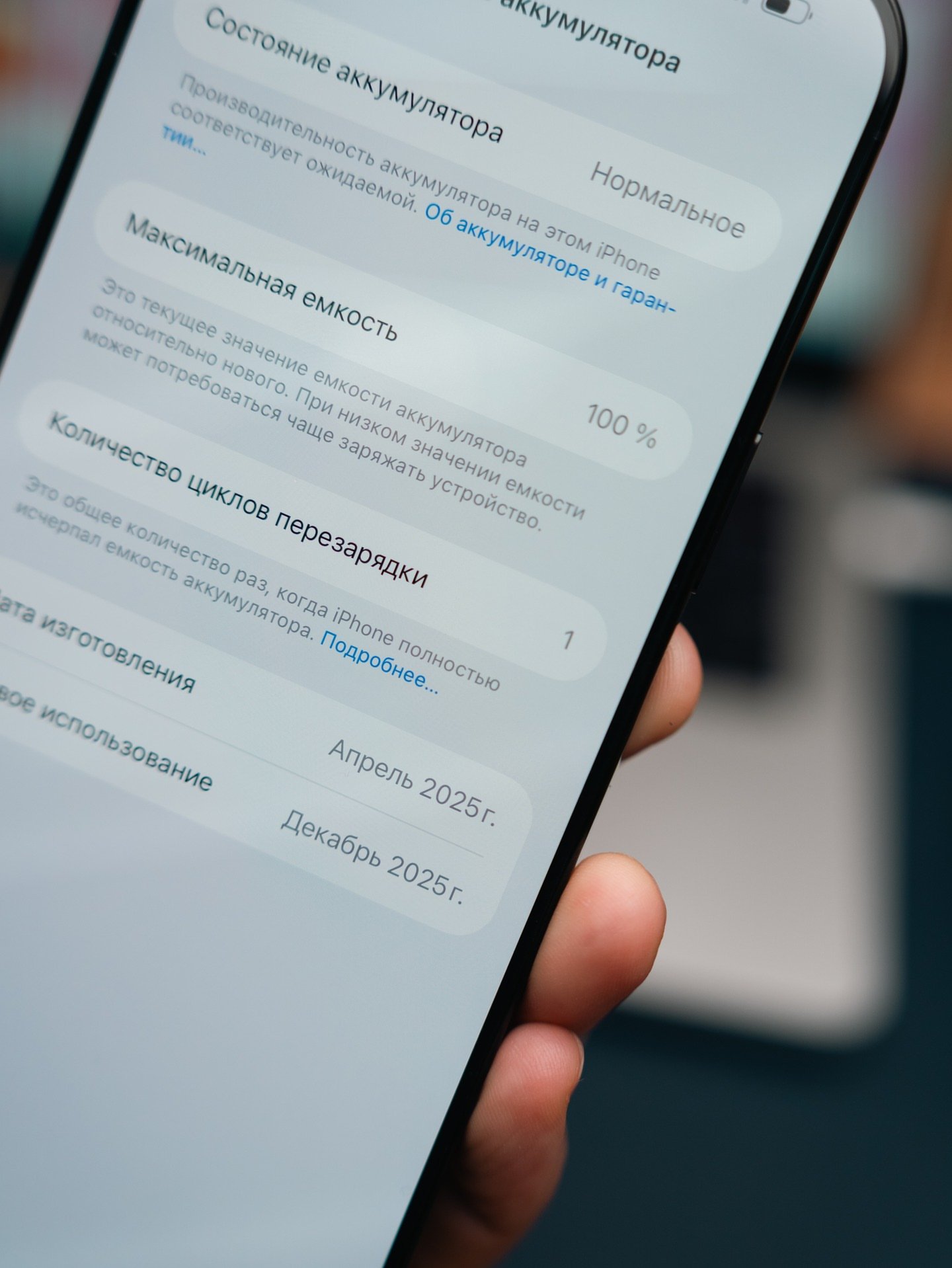 Battery Health: ๐100% (1 cycle)