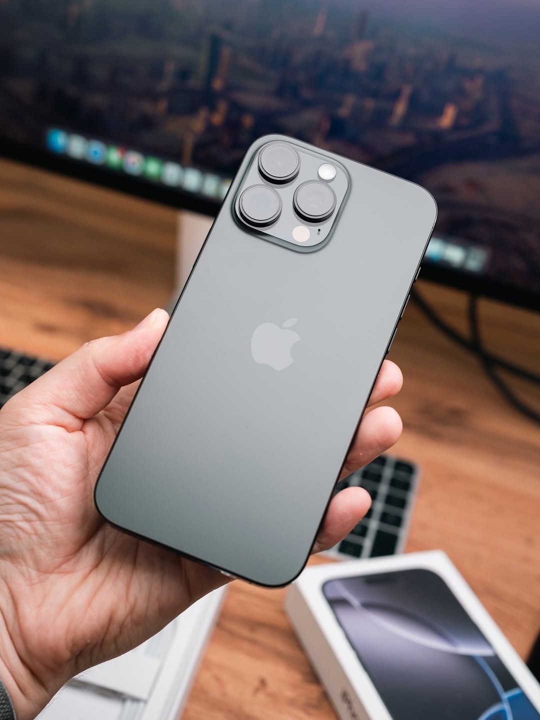 Premium pre-owned iPhone 16 Pro Max 256GB in perfect condition. Fully tested, unlocked, with 100% battery health (27 charge cycles). Complete original set.