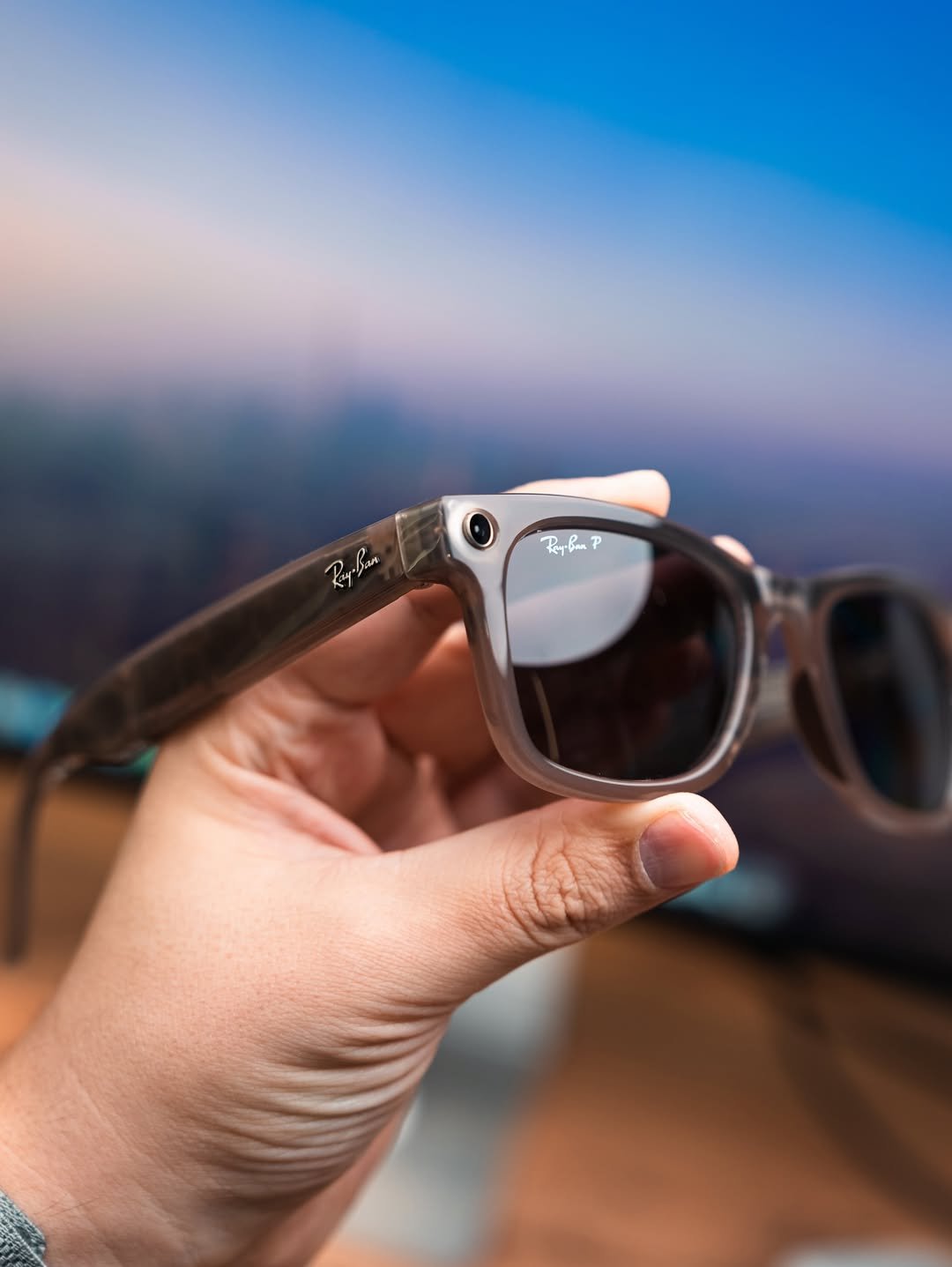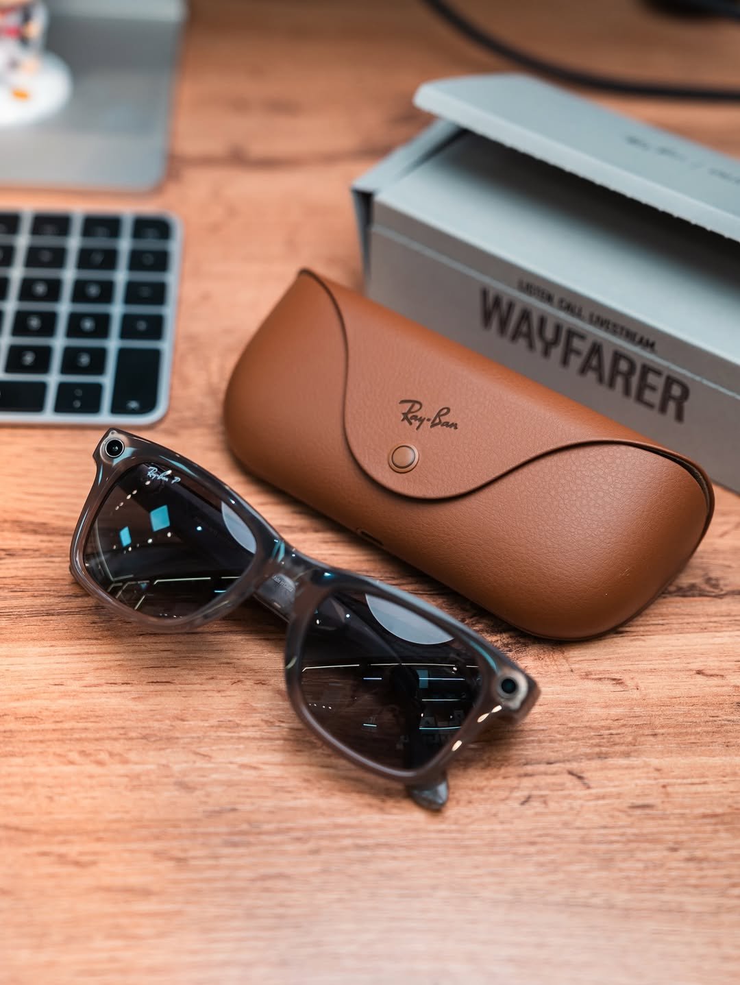 Ray-Ban Meta Wayfarer – Shiny Warm Stone / Polar Gradient Graphite (Used, Excellent Condition, Complete Set)